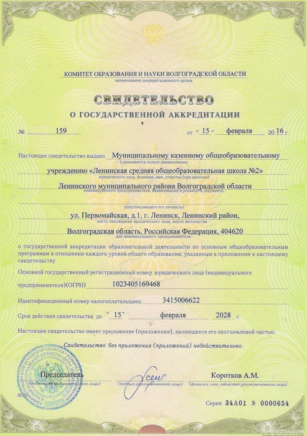 - Полное наименование ОО - Муниципальное казенное общеобразовательное учреждение "Ленинская средняя общеобразовательная школа № 2" Ленинского муниципального района Волгоградской области